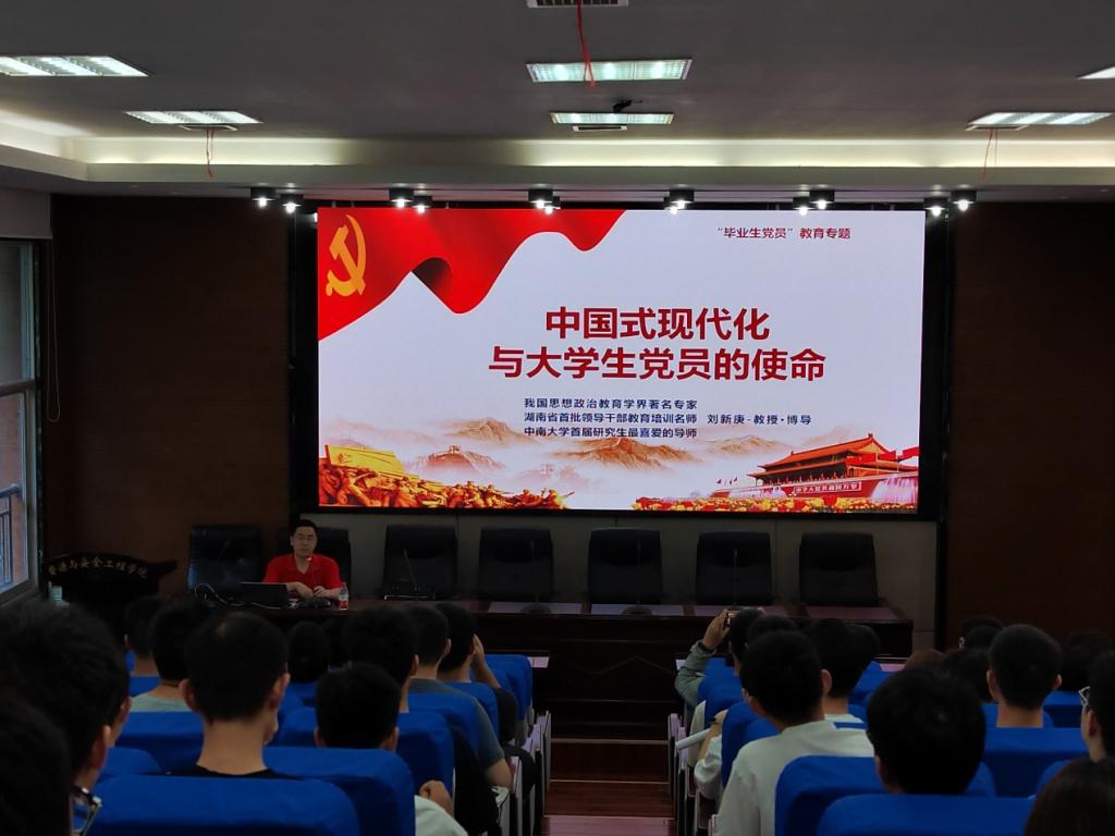 之后,刘新庚教授开展了“中国式现代化与大学生党员的使命”的专题授课。刘新庚教授从历史角度、理论角度、实践角度三方面讲解中国式现代化的具体进程,讲座内容丰富,兼具趣味性与理论性,将中国化的历史进程娓娓道来,强调中国特色社会主义现代化的本质就是把握好“中心任务和奋斗方向”。刘新庚教授表示,高水平的思政教育是轻松愉悦的,学生们全程抬头听讲,思想集中,积极参与讨论才是将党的思政工作从课本走向生活,从抽象变为具象的表现。