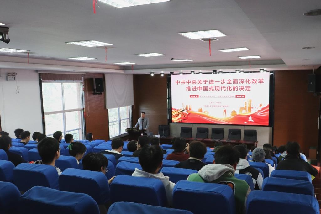 党委委员、副院长李地元在采矿楼T302讲授“深入学习贯彻党的二十届三中全会精神”主题党课,城地硕士一、二党支部、本科生安全党支部全体师生党员及研究生代表参加学习,党课时长接近60分钟。