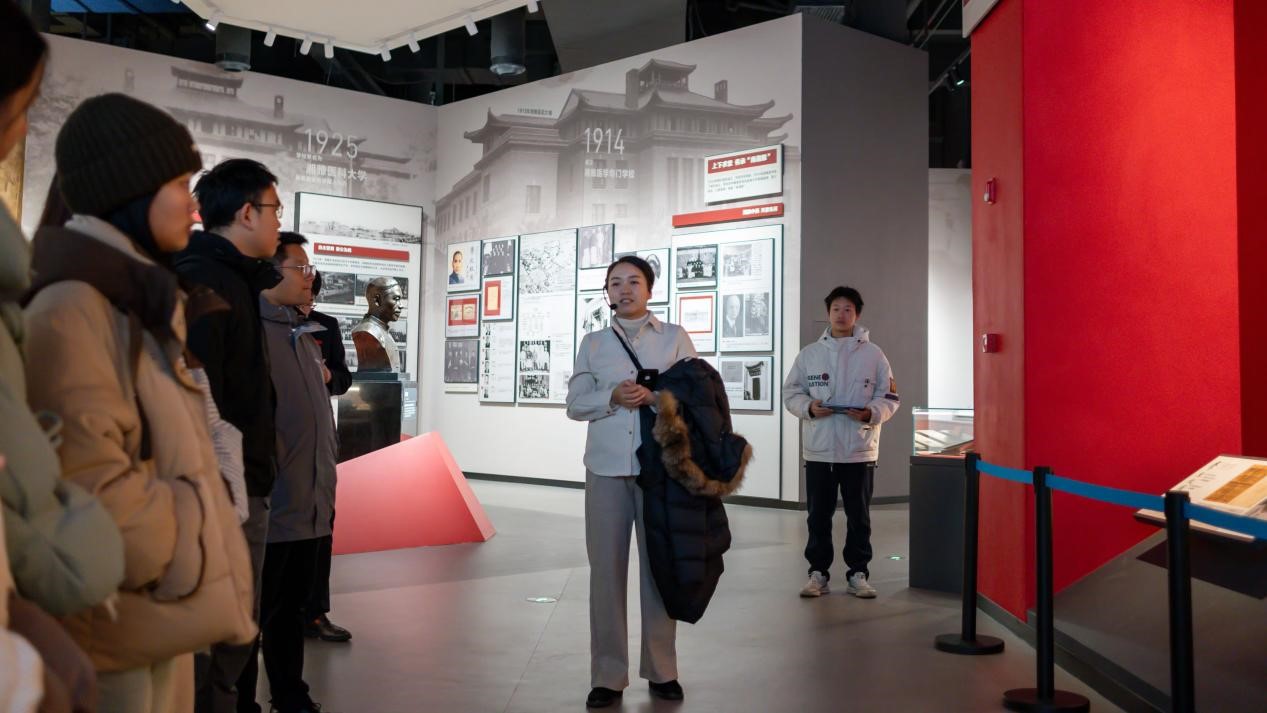 校党委宣传部常务副部长胡杨老师作为支部对口联系领导莅临指导,与校史馆的讲解老师一道为大家做了详尽的讲解,院党委副书记岳龙老师和辅导员李嘉老师参与活动。胡杨老师在讲解过程中,强调了学校在不同历史时期的发展脉络,特别是在新时代的创新与跨越,进一步激发了党员们的使命感和责任感。
