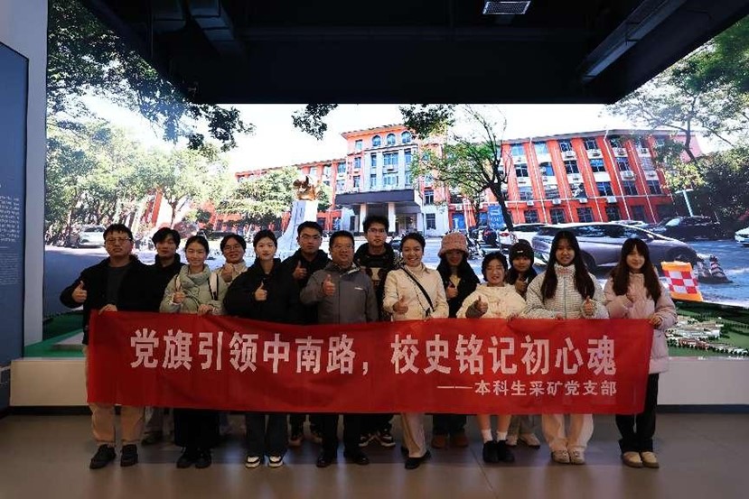 本科生采矿党支部在党旗的指引下,开展了以“党旗引领中南路,校史铭记初心魂”为主题的党日活动。全体党员赴中南大学校史馆参观,开展党性教育,回顾学校的历史发展与精神传承。