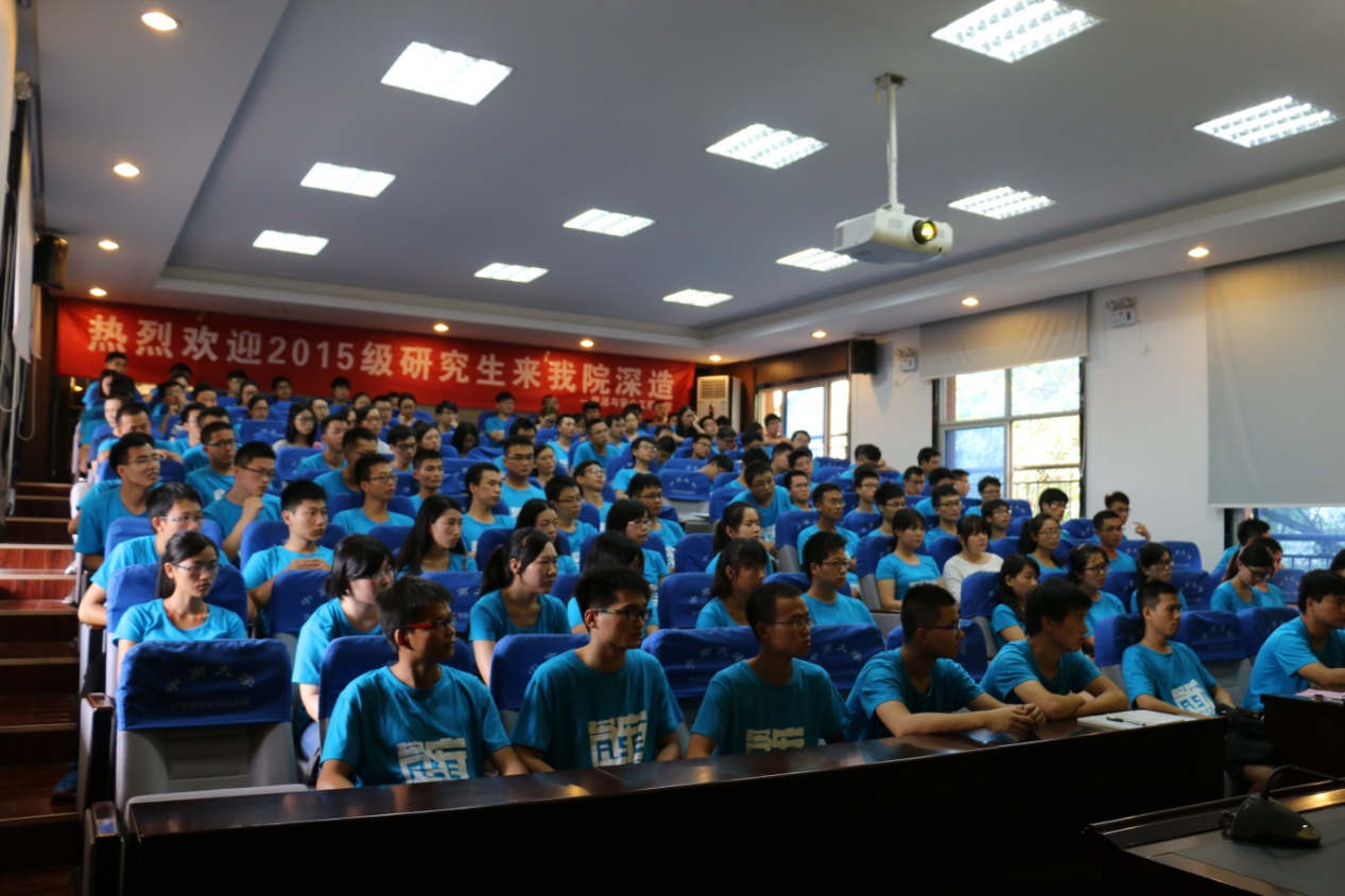 各个专业方面的学习。建议我们的同学除了按培养方案选好基本的学分,还要根据导师方向选课以及自己的兴趣爱好选课。鼓励我们的同学们多发高水平的文章。15级研究生新生代表田听雨表达了对研究生生活的期待与向往,并决心在导师的指导下努力学习、专心科研,不仅完成好自身的学习科研任务,更要开拓进取、勇于创新,积极肩负起传承优良学术传统、为中华之崛起而不断奋斗。随后,资安院党委书记李顺求教授告诫我们的同学要树立远大目标、脚踏实地、把握住机会,持之以恒,以一股韧劲促使自己成长与成才。