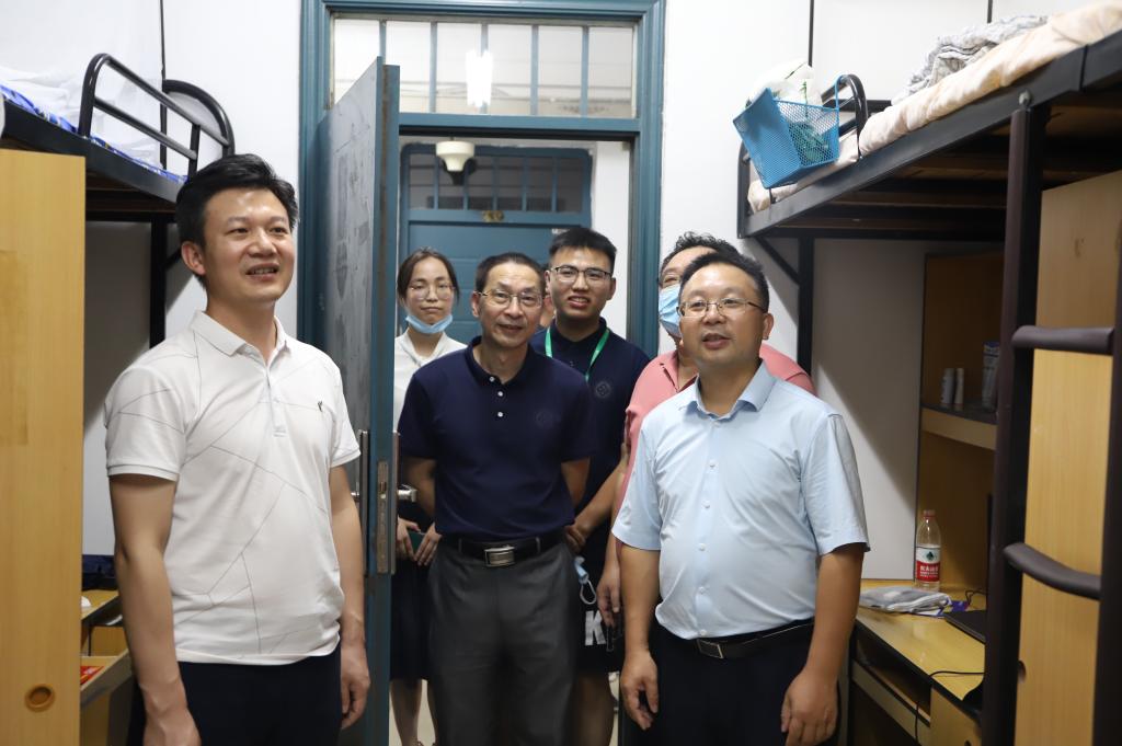 辅导员陪同下前往迎新点与学生宿舍,了解迎新工作情况, 慰问在一线工作的志愿者。