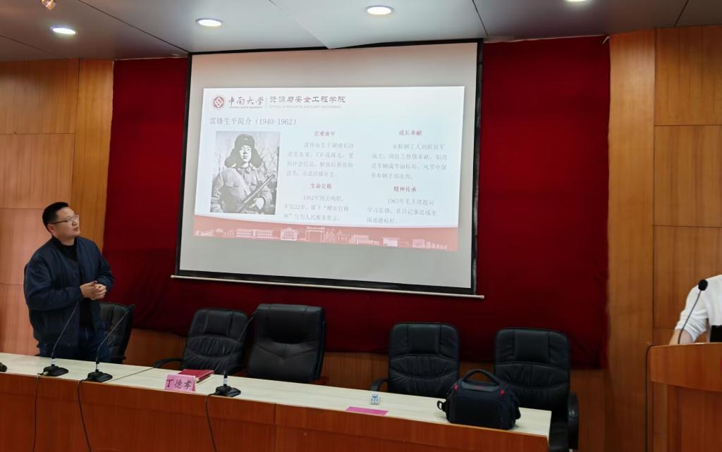 随后,围绕雷锋月主题,全体团学干部聚焦“学习雷锋精神”展开专题教育。丁德孝老师通过介绍雷锋生平事迹、深入阐述新时代雷锋精神来激励团学干部将雷锋精神融入日常工作中,热爱党、祖国和社会主义,树立坚定价值坐标,以实际行动践行敬业精神。