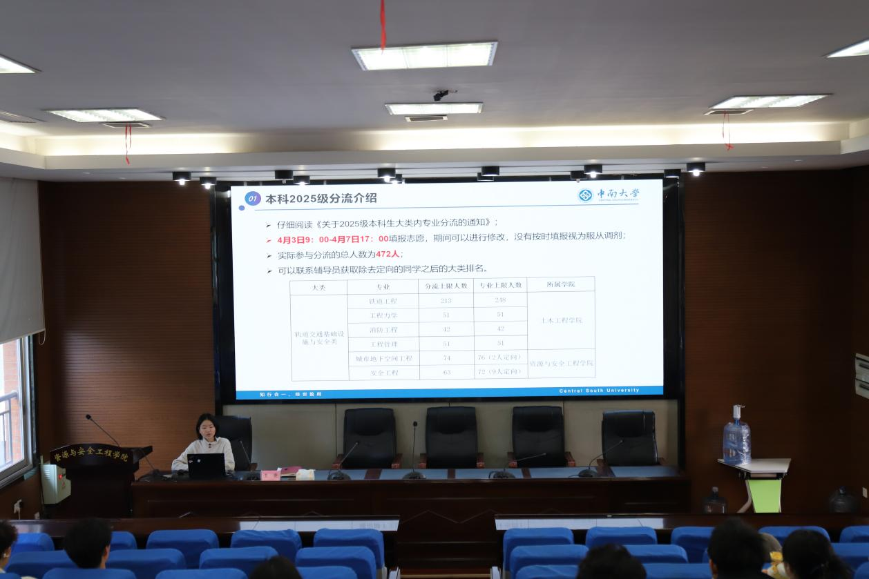随后,黄佳星老师作轨道交通基础设施与安全类2025级专业分流专题汇报,并设置提问互动环节,精准回应学生的分流疑问。黄老师聚焦分流关键工作,明确了志愿填报的时间节点、填报规则等核心信息,解读了大类内各专业的分流计划、所属博彩论坛