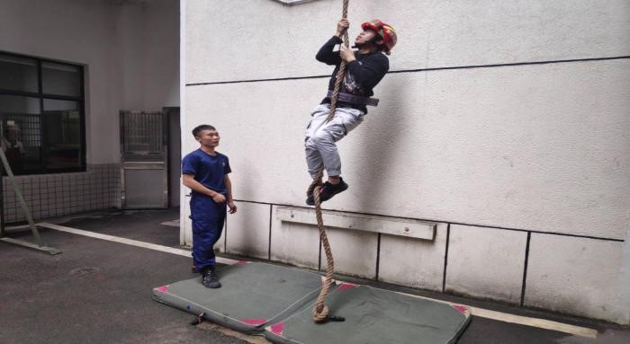 消防员带领同学们参观了消防中队的各种装备,并一一讲解其功能和使用方法,对于同学们的疑问,消防员耐心解答,平时接触不到的消防装备,在消防员的生动讲解下,变得清晰有趣起来。消防员还为大家展示了干粉灭火器的使用、快速连接水带和绳索救援技术训练,动作迅速敏捷,“绳索攀登到4楼,需要在30秒内完成”,他们的时间往往以秒来计算,生命在前,不得不快。