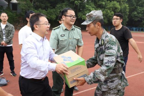 党委书记欧旭理、院长罗周全、党委副书记马国荣、副院长李孜军、副院长黄锐及全体辅导员深入军训场地,看望土木安全类2019级新生及教官。