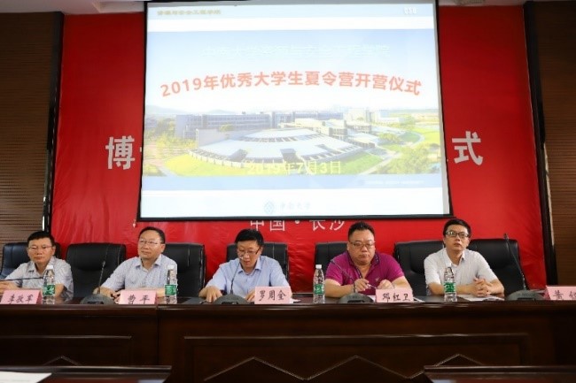 为促进全国高校优秀大学生之间的交流,激发青年学生对矿业、安全、岩土等学科学习和研究的兴趣,选拔有志在我院继续深造的优秀大学生,7月3日下午,中南大学资安院2019年优秀大学生暑期夏令营开营仪式于采矿楼T302顺利举行。资安院院长罗周全教授,副院长李孜军教授、邓红卫教授和黄锐副教授,以及曹平教授、研工办秦俊老师、研究生辅导员于谦老师出席开营仪式,来自全国110多位优秀大学生参与我院暑期夏令营活动。