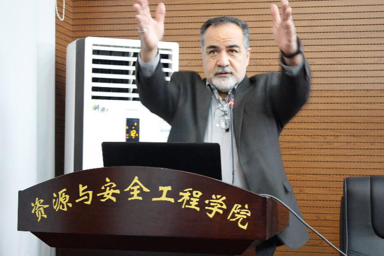 副教授Jamal Rostami于采矿楼T302先后做了的两场共四个题目的报告,报告题分别为 “Recent research progress of Earth Mechanics Institute in Colorado School of Mines”、“Review of current drilling project for Lunar applications”、“Rock strength Probe, a device for rock strength measurement inside small boreholes”和“TBM cutterhead design for hard rock applications”。
