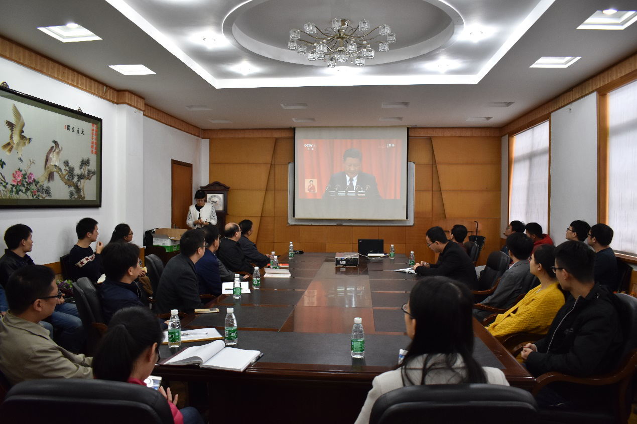 为全面了解“十九大”实况,及时领会“十九大”精神,深入学习党的政策方针,加强广大学生的党性修养,在院党委组织带领下,资安院于2017年10月18日上午9:00组织我院部分本科生及研究生在采矿楼222、224会议室集中观看了“中国共产党第十九次全国代表大会”开幕会直播。我院各级领导及教职工参与了本次活动。