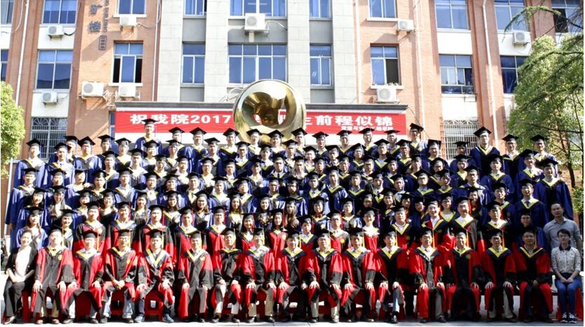 学工办李欢、秦俊、于谦老师。全体2017届毕业生身着学位服,井然有序的走进会场,并按照事先安排好的位置就坐,大家齐聚一堂,分享这一激动人心的时刻。