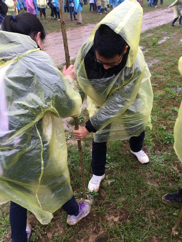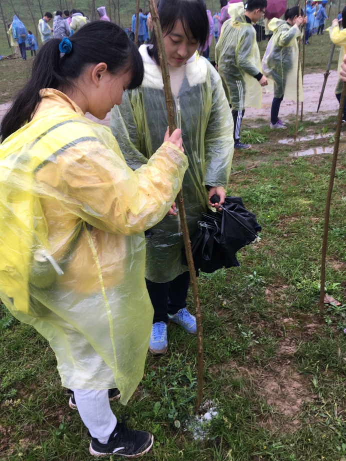 3月12日上午,下起了大雨,志愿者们不怕困难,冒着风雨,依然坚持去植下自己的树苗。志愿者们刚下车便跃跃欲试,纷纷开始进行准备活动。所有志愿者按照事先分好的小组有条不紊地进行准备工作:领工具、拿树苗、选地以及整地。接着,由专业人员为同学们展示了植树的方法和步骤,同学们都站在一旁认真学习。听完讲解后,同学们开始植树。大家手持铁锹,干劲十足,将一棵棵充满生机和希望的树苗植入地里,与此同时也植下了绿色的希望之春,虽然大雨磅礴,泥泞连连,给活动带来了诸多不便,但是志愿者们勇敢的精神鼓舞着他们坚持完全程。中午12时,各组均完成了事先要求的任务,共计植树54棵,至此,活动取得圆满成功。