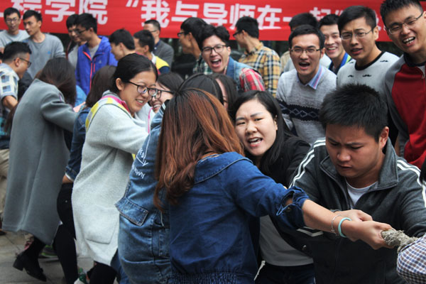 在采矿楼前坪举办了一场主题为“我与导师在一起”的拔河比赛,博彩论坛