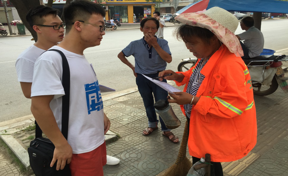 中午1点,同学们从中南大学南校区淹鱼塘公交车站出发乘坐公交车,历时近2h的辗转,经过几名好心路人的指引下终于到达了雷锋镇。到达雷锋镇后,同学们片刻没有歇息的开展了前期调研工作,通过对雷锋镇各行各业居民,如商店主、清洁工人、农民等发放问卷调查与咨询了解,我们大致掌握了雷锋镇居民的文化生活与物质生活状况,随后,我们采访了雷锋镇街道办事处社会事务办文化专干萧主任,了解了雷锋镇的人口数量、居民生活水平、居民文化生化、民间文化艺术等问题。并且协商确定好了巡演的确切时间与地点。