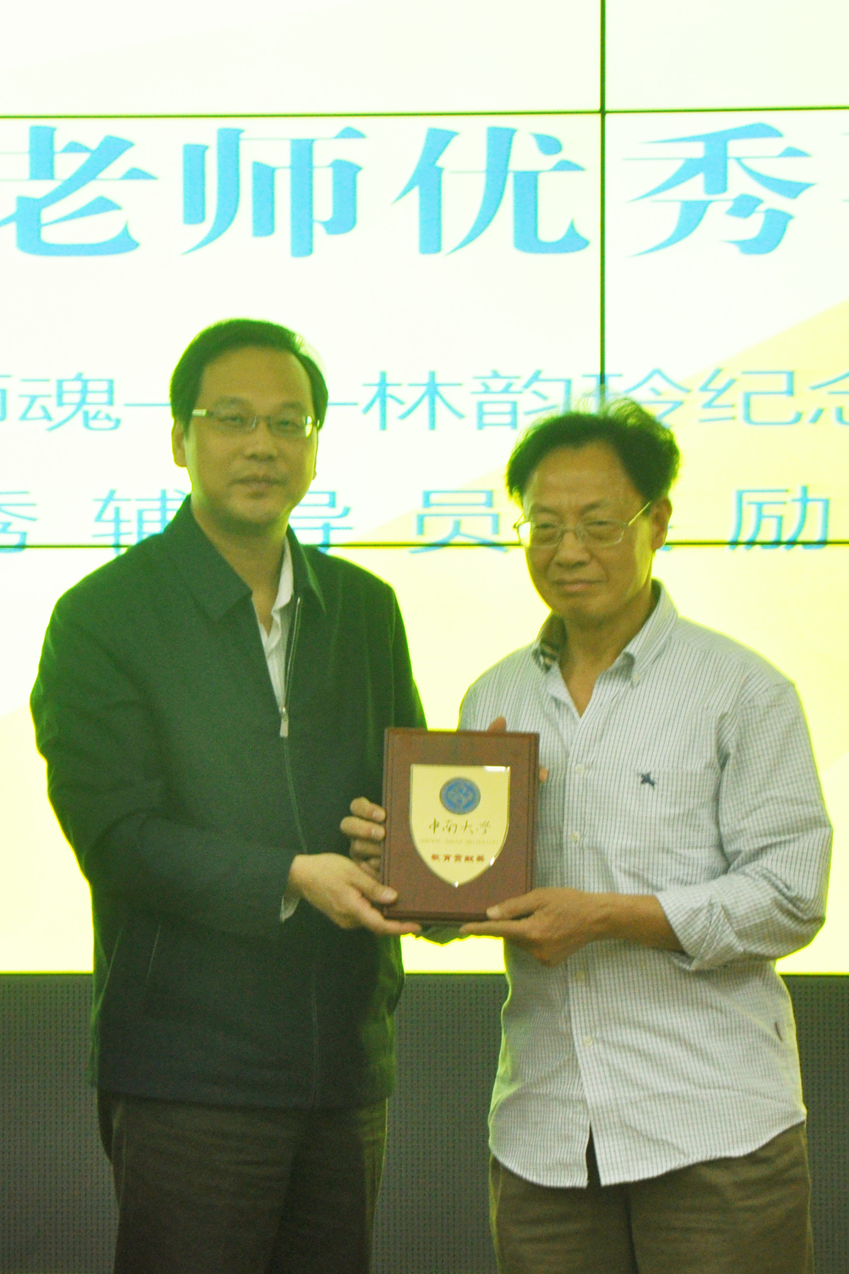会上,陈寿如教授向我校辅导员代表赠送纪念文集,并将由他和家人以及校友捐资、筹集的100万元捐赠给学校以设立“林韵玲优秀辅导员奖励基金”。校党委副书记高山代表学校接受了陈教授的捐赠,并向陈教授颁发了“中南大学教育贡献奖”奖牌和捐赠纪念证书。