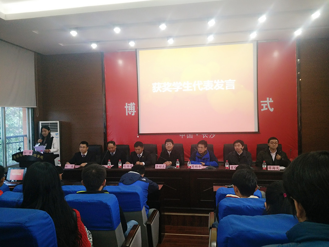 颁奖仪式在共同奏唱国歌后正式开始,李顺求书记宣读了江南化工奖助学金、宏大奖助学金、金诚信奖助金以及湖南开拓奖助学金表彰决定,各奖助学金获得者依次上台领奖并与领导嘉宾留影。颁奖结束后,安全1401班肖陆伟作为获奖学生代表发言,她既表达了对各设奖单位深深的感激之情,同时表示会再接再厉,努力取得更大的成绩来回报学校,回报社会。之后各企业高管向同学们介绍了各自企业近年来的发展情况,并希望同学们能够戒骄戒躁,专心学习,早日成材,为行业发展贡献力量。