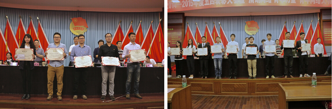 研究生会获“优秀研究生会”荣誉称号,城地1303团支部荣获“五四红旗团支部”荣誉称号,安全1401团支部等3个团支部获得“校级先进团支部”荣誉称号。我院本科2011级学生王宏伟荣获中南大学“十佳大学生”称号,郭绍康等4名同学荣获“优秀学生会干部”,董力玮等4名同学获“优秀研究生会干部”,罗玉莹等6名同学荣获“优秀团干”,简筝等21名同学荣获“优秀团员”称号。这次我院首次获得“五四红旗团委标兵”称号,也是首次同时获得“五四红旗团委标兵”、“优秀学生会”、“优秀研究生会”荣誉称号。