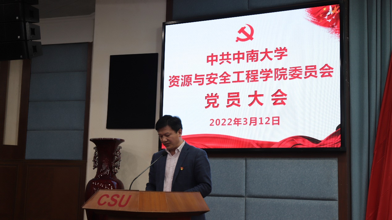 于2022年3月12日下午在科教楼报告厅召开全体党员大会选举出席中国共产党中南大学第四次代表大会代表。大会由博彩论坛