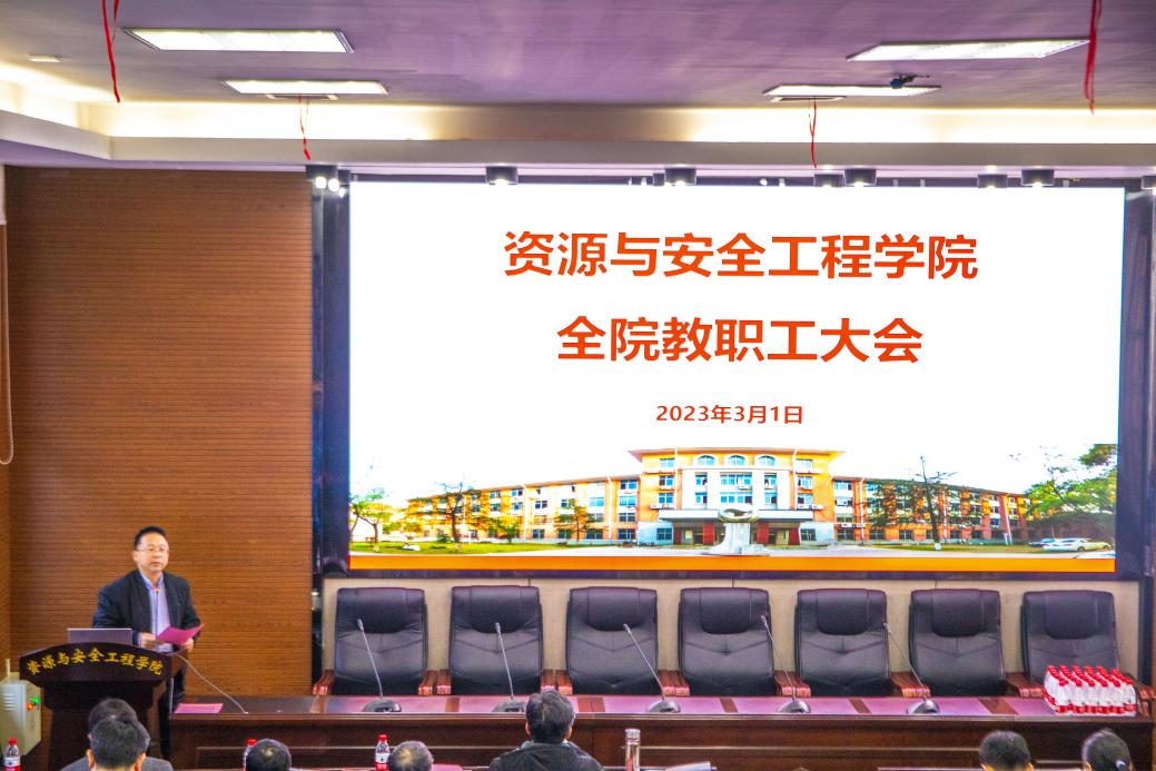 新学期第一次教职工大会于采矿楼T302报告厅顺利召开。本次大会由院党委书记欧旭理主持,院长周子龙发表重要讲话。
