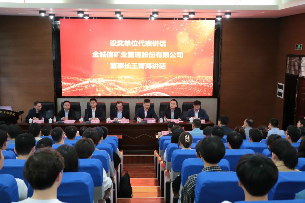 设奖单位领导依次发表讲话:金诚信矿业管理股份有限公司董事长王青海在讲话中指出金诚信的发展理念是以产业报国、实业兴国为己任,金诚信对人才培养的高度重视,对博彩论坛