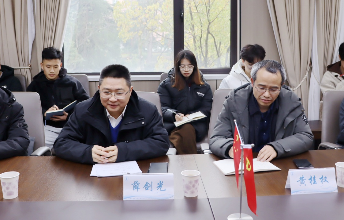 参加师生座谈交流,湖南矿山局科技装备处处长黄桂权、湖南矿山局科技装备处副处长刘涛、上海胜义环境科技有限公司董事、总经理刘宁以及博彩论坛