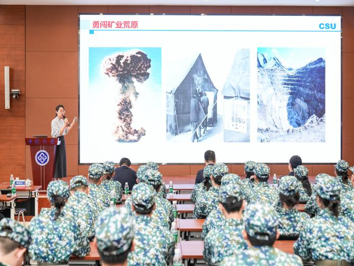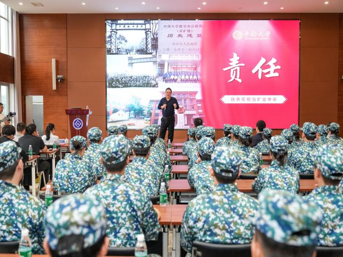 一代代中南矿业人前赴后继、执着拼搏,他们以汗水为墨,以大地为纸,书写着对国家的深情与奉献。“我们在采矿楼前石雕上看到的,是刻着‘泱泱中华,屹立于世,壮我矿业,还看今朝’的矿业强国梦,我们心中秉持的,是一代代采矿人已经行动诠释的方向:路在哪里?祖国哪里需要我们,路就在那里。”黄麟淇教授带领现场同学回顾古德生院士、李夕兵教授、周子龙院长为代表的一代又一代矿业领军人物的脚步,为同学们生动讲述了中南矿业人“吃得苦、霸得蛮、耐得烦、不怕死”的故事。