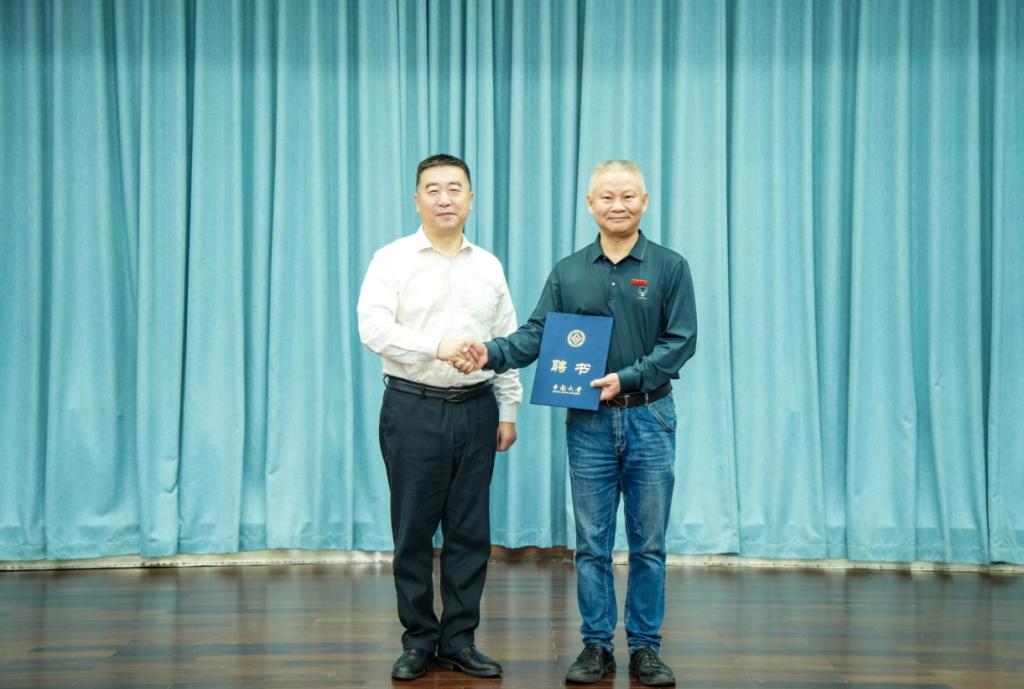仪式上,李景升副书记为万步炎教授颁发聘书、佩戴校徽,万步炎教授表示母校是国内知名的高水平双一流大学,学科实力雄厚,发展迅猛,本次非常高兴能成为中南大学的兼职教授,对母校的一直以来的悉心培养和大力支持表示感谢,并希望今后进一步与母校密切联系,在人才培养、科学研究、社会服务等多个方面贡献力量。