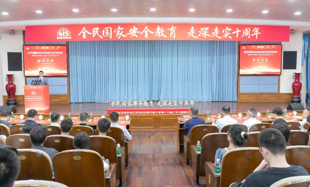 4月11日,全民国家安全教育日系列活动暨中南大学第十七届大学生安全文化节启动仪式在岳麓山校区国际报告厅举行。本次活动由学校联合湖南省委办公厅、长沙市委办公室、湖南湘江新区党政综合部共同主办,校学工部、保卫部、团委、资安院共同承办。校党委副书记蒋建湘、学工部部长欧旭理、保卫部部长张国栋、团委书记刘正宗、资安院党委书记秦进以及湖南省委办公厅、长沙市委办公室、湖南湘江新区党工委相关领导出席,14所驻湘江新区高校师生代表500余人参加。