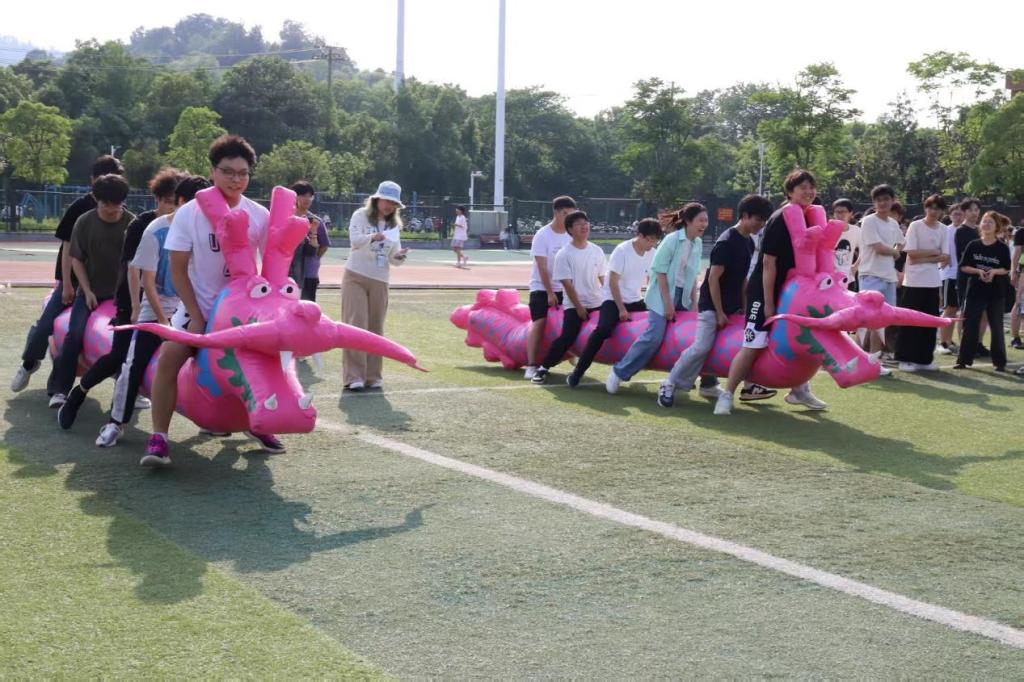 本次运动会精心设置了“龙行天下”“闪电纵队”“俄罗斯方块”“携手并进”等七大趣味项目,各项目场地井然有序,参赛队伍轮番上阵,现场加油声、欢呼声此起彼伏。