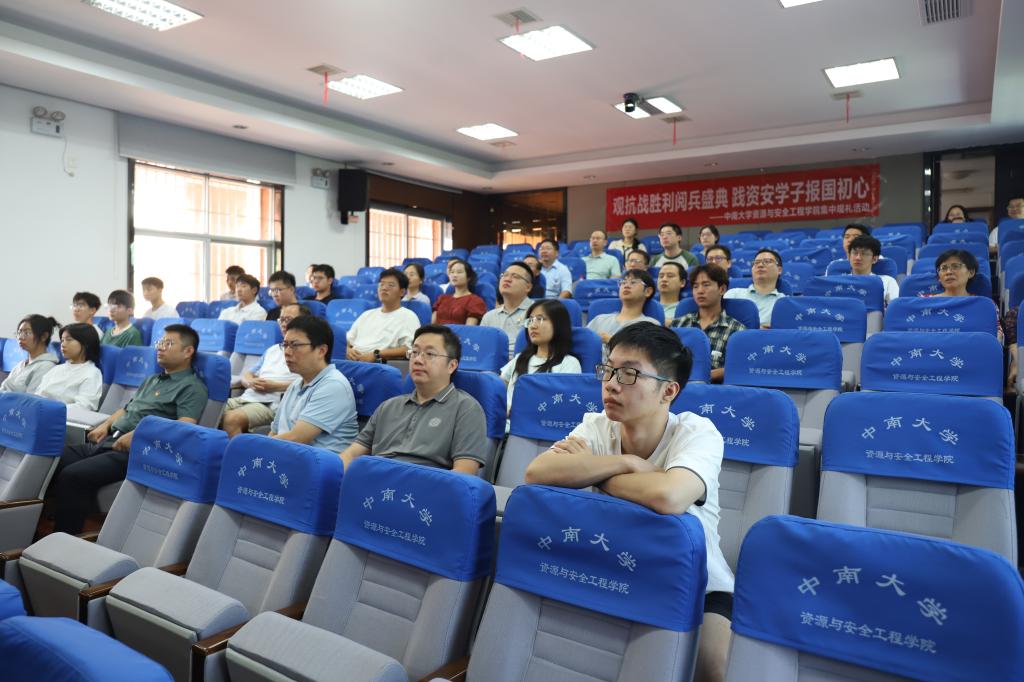 组织在校师生在采矿楼T302教室集中观看纪念中国人民抗日战争暨世界反法西斯战争胜利80周年大会。博彩论坛