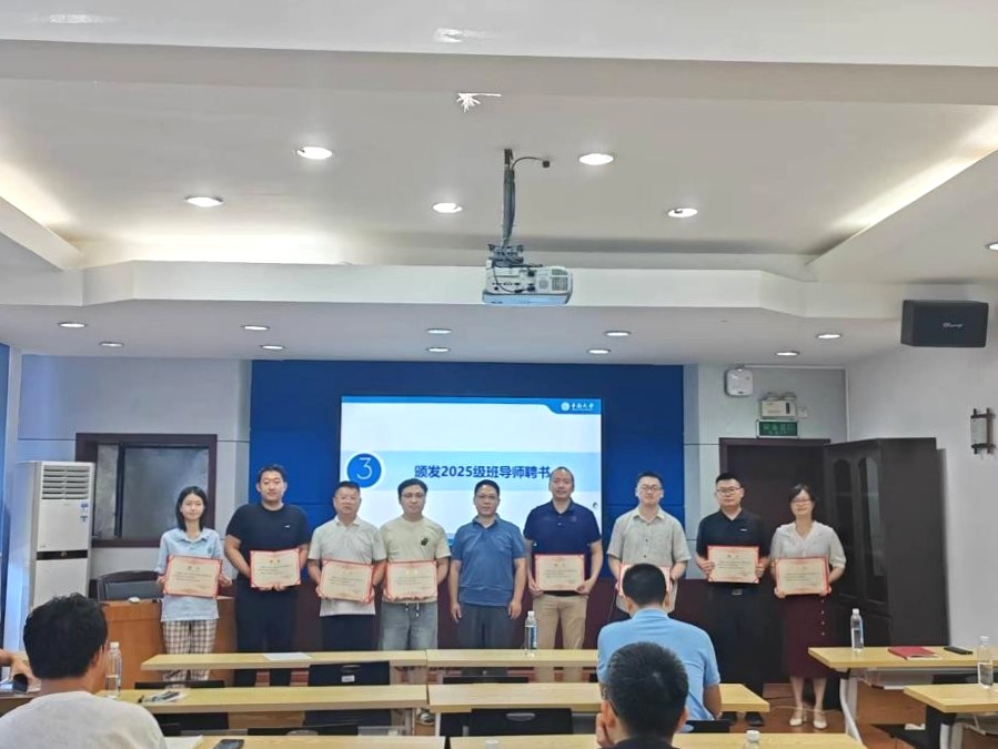 会上,秦进书记为2025级新任班导师颁发聘书,对大家的加入表示欢迎;同时为获得2024-2025年度“中南大学优秀班导师(标兵)”称号的蔡鑫、李杰林、石英、吴金标、彭平安五位教师颁发荣誉证书,肯定其在学生工作中的突出贡献,激励全体班导师以优秀为榜样,践行育人职责。